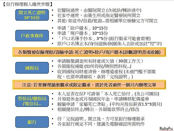 【自行辦理親人離世步驟SOP】我整理如下 (不好意思,工程師習慣XD)