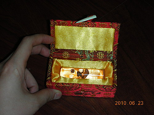 開運印章的部份,胎毛裝在印章上方,我們選的這款是「紫檀心經開運章」