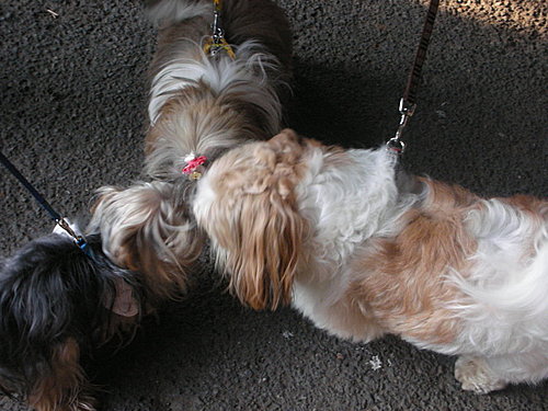 三隻狗交頭接耳,