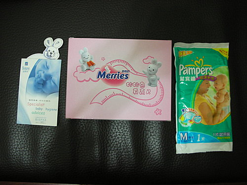 法貝兒爽膚液、妙兒舒身高尺、幫寶適M號*1片