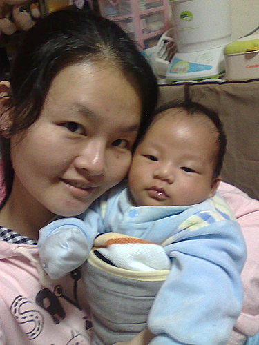 跟之前在月子中心的樣子差很多~~