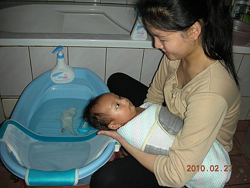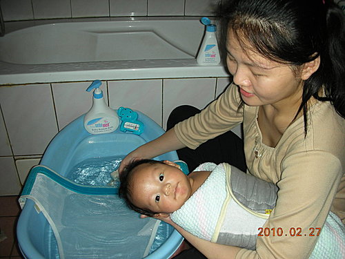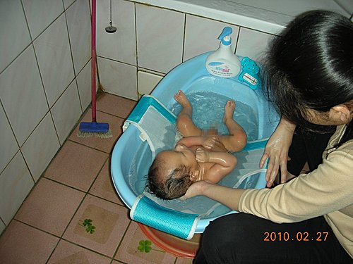 嬰兒洗澡是豆醬麻在月子中心學的,
