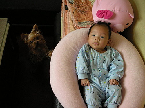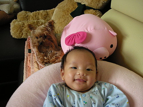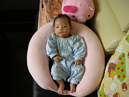 現在就當小土豆的睡墊,可調整式的枕頭,能防小土豆亂翻唷~